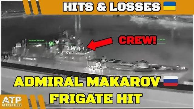 俄军AK-630M近防炮系统则根本来不及,火力覆盖射击多方向的小型快速目标。最终,防空导弹拦截失败,乌军远程攻击无人机直接命中俄军“马卡罗夫海军上将”号护卫舰舰桥/垂发区域附近。