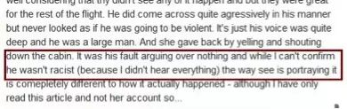 ▲截图为国外目击者的说辞,其中红框部分的内容大意为:他为这点事就吵嘴确实不对,但我不能确认他是不是种族主义者,因为我没听到所有的对话