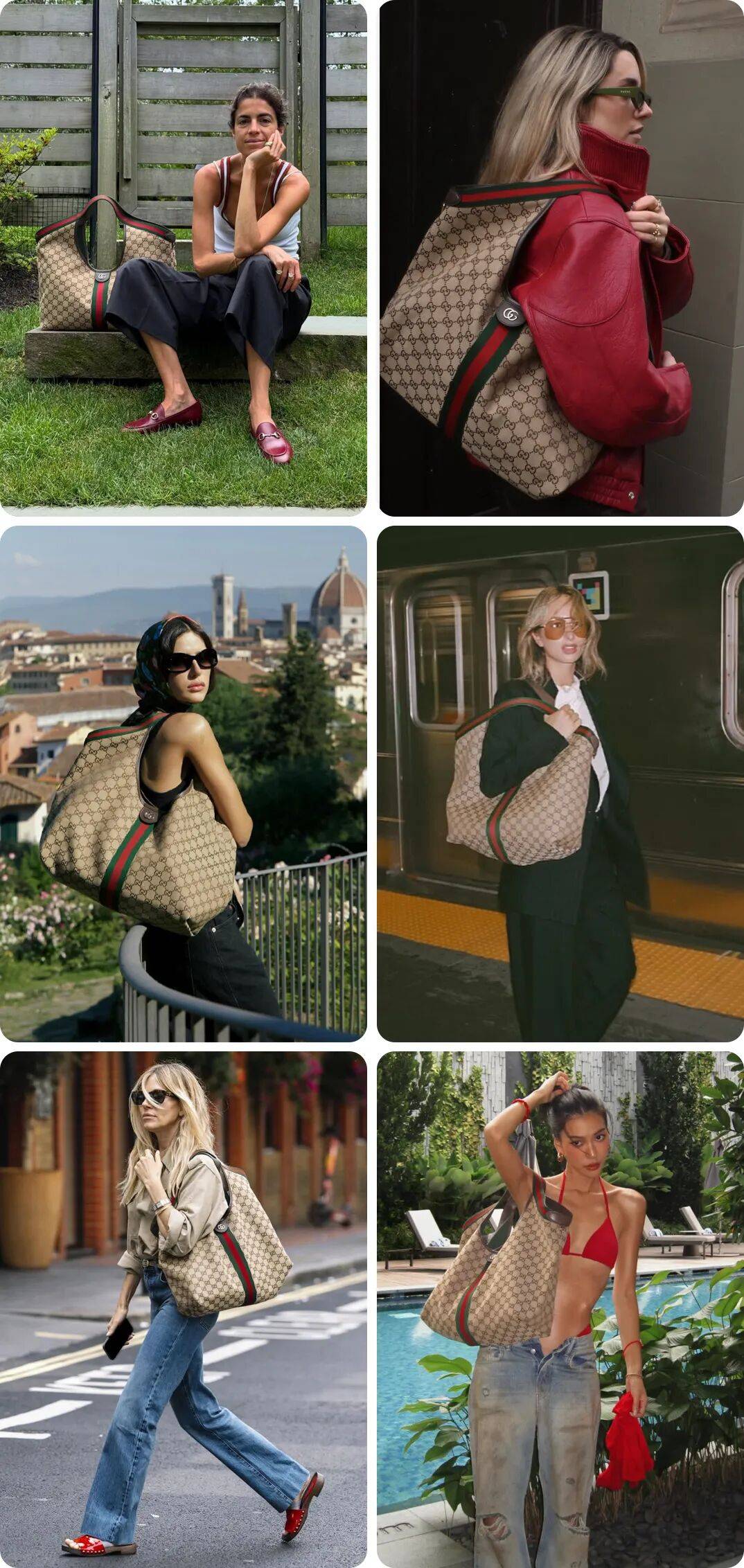 这只包目前在外网的一个状态可以用“火爆”来形容,出现的场景也很多元化,能充分感受到它跟日常生活的高匹配度。
