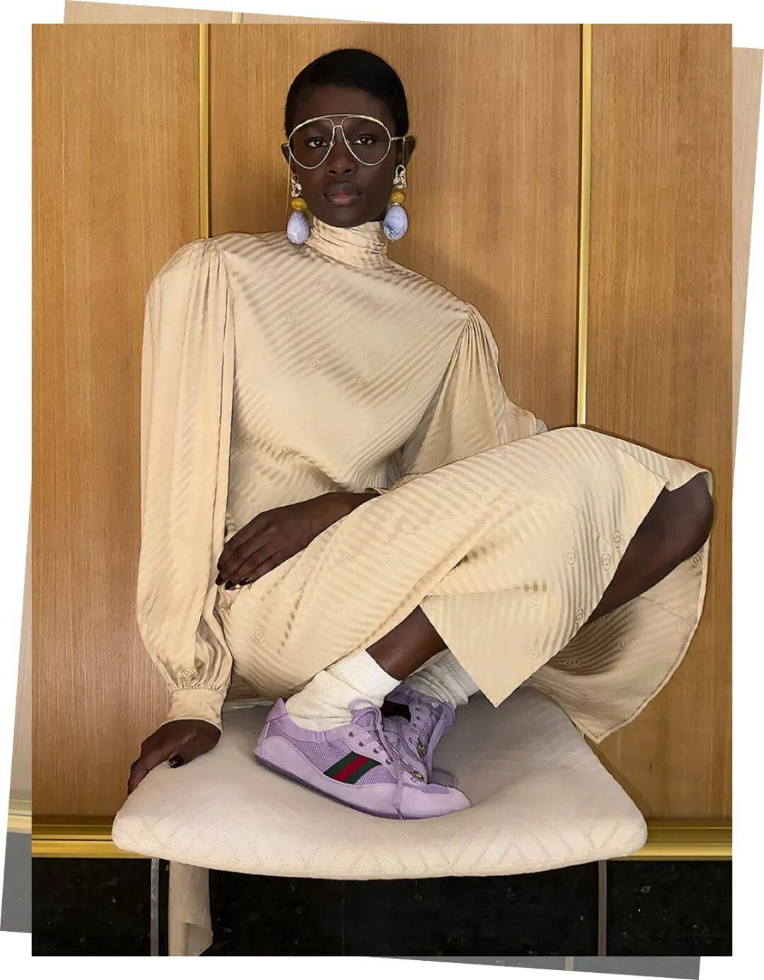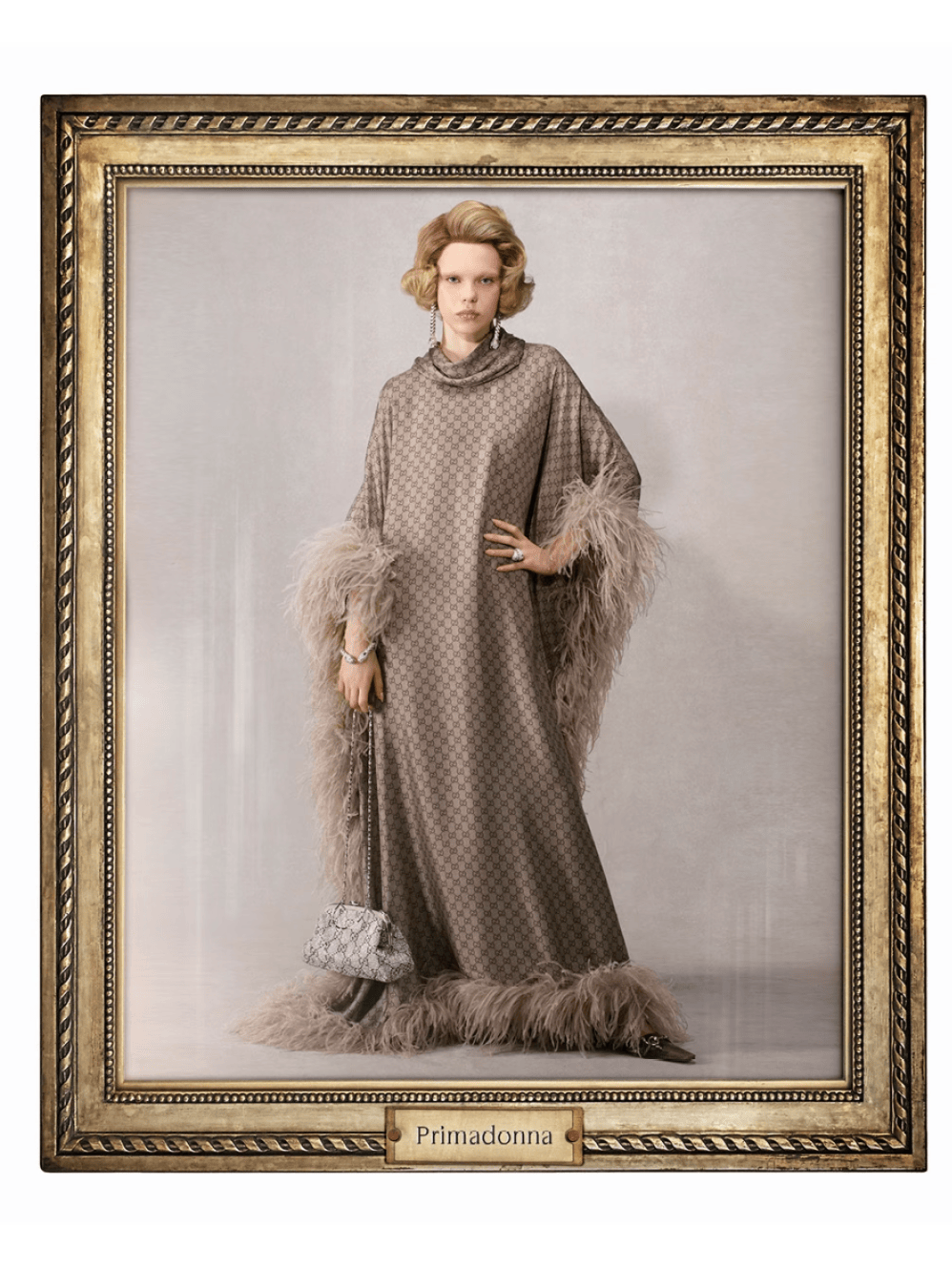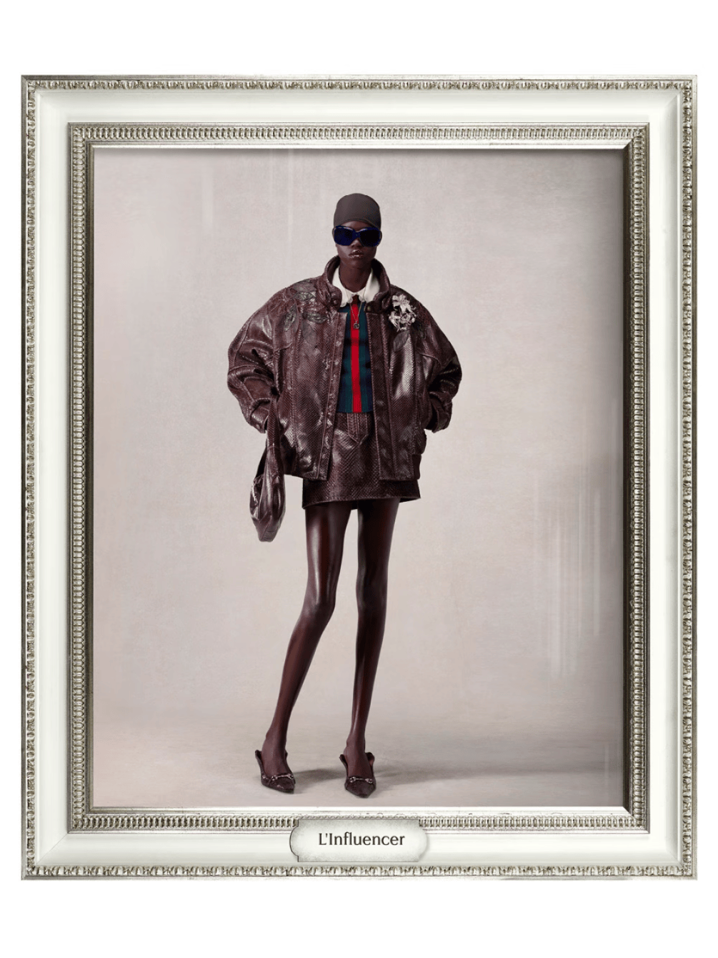 每一张“画作”都是一种社交角色和身份信息,有书呆子、“酷哥”、I人、大明星、伯爵夫人,从名利场到日常,显示又“讽刺”。这种设计基调的大概意思就是:未来的你都可以在Gucci找到属于自己的角色。