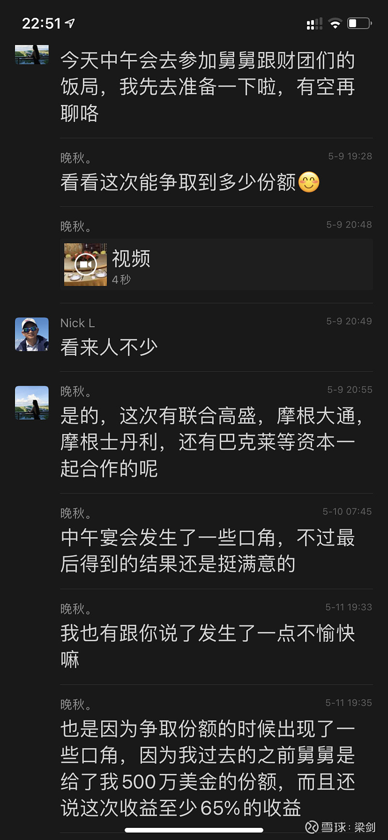 骗子仍然很有耐心,此后一步步布局过程中,除了继续嘘寒问暖,穿插着“舅舅”去和一帮资本大佬聚会,商谈下一个操盘标的等事宜。