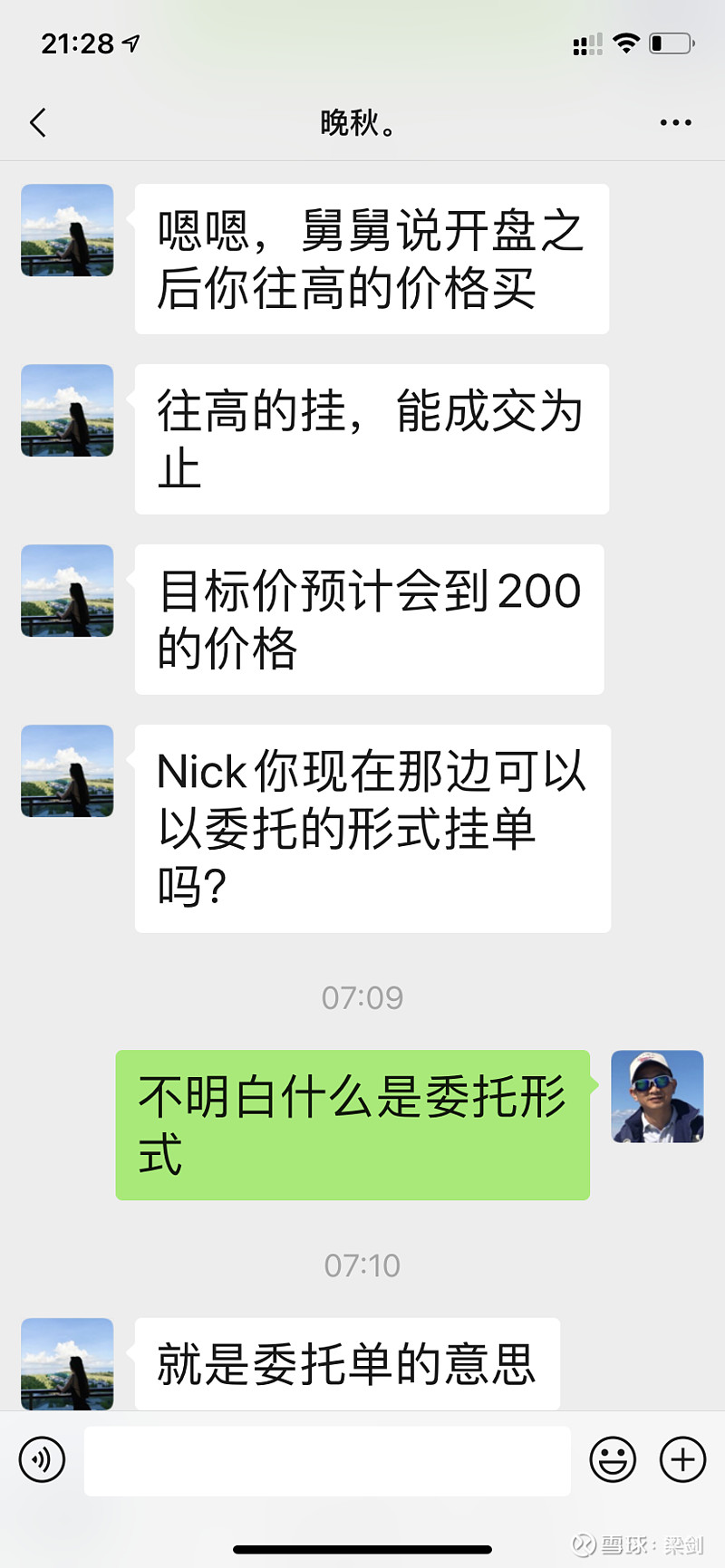 两周前有一天,骗子和我说,“舅舅”要行动了,让我开盘前就在线等消息。然后等半天,又说“舅舅”觉得时机不合适,临时取消了。我估计是继续吊胃口。
