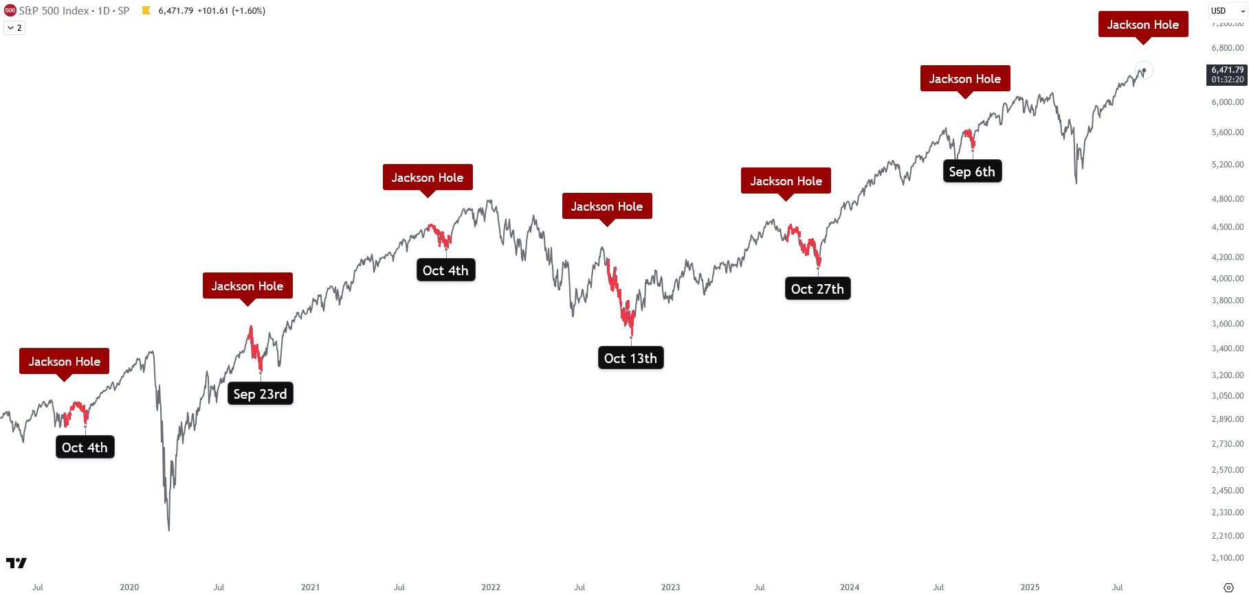 这气其实是白打的,图中显示的是都是加息周期的jackson hole。