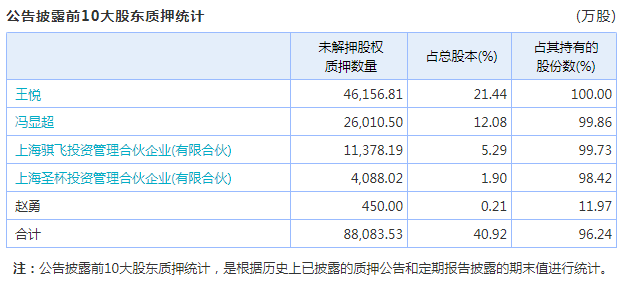 不过王悦所持股份100%已质押,冯显超所持股份也几乎全部质押。