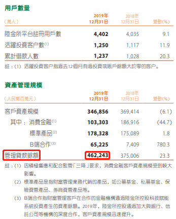 在其旗下科技公司中,陆金所控股备受关注。2019年,在财富管理和个人借款业务领域,陆金所积极应对挑战,把握监管新政下的新机遇,业务实现稳健增长。截至2019年12月末,陆金所控股管理贷款余额4622.43亿元,较年初增长23.3%;30天以上逾期率为1.9%,平台注册用户数达4,402万,较年初增长9.1%。