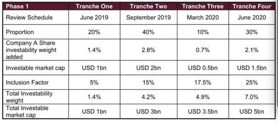 不过与此前公告有所差异的是,富时罗素临时公告调整称,本次A股的纳入因子将只提升2.5%,即从15%增加至17.5%。也就是说跟随指数的被动配置资金规模也将随之缩小至约70亿元。原计划本次扩容将是富时罗素扩容A股的最后一步,一次性完成剩余40%的总进度,但调整后,本次扩容完成进度缩减至10%,最后30%被推迟至2020年6月。