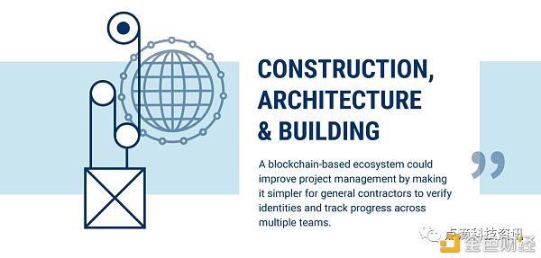 区块链技术还可以帮助确保建筑材料来自正确的地方并质量可靠,而智能合同可以使项目阶段性的及时付款变得更加简单。