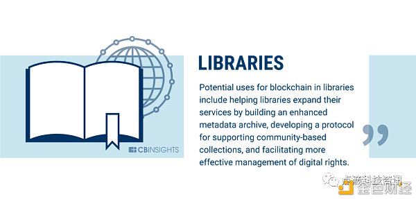 到目前为止,区块链在图书馆领域的潜在应用场景包括通过构建增强型元数据档案库,开发协议支持社区图书收集以及促进数字权利更有效管理来帮助图书馆扩展其服务。