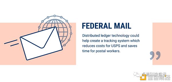甚至美国邮政局也正在考虑实施区块链以改善运营和服务。分布式分类帐技术可以帮助创建一个跟踪系统,该系统可以降低USPS的成本并节省邮政工作人员的时间。