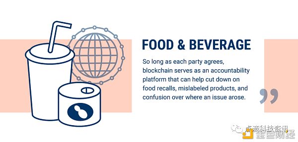 作为一个分布式账本可以记录,存储和跟踪数据,区块链提供了一种监控食品供应链并追踪污染问题的方法。它有利于食品加工商,可以避免向经销商发送有害物品; 零售商,可以减少中间环节或更快速有效地召回; 以及消费者,他们可以相信他们所购买的东西是安全的。