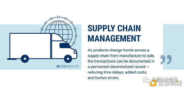 使用区块链,随着产品从制造到销售的整个供应链易手,交易可以记录在永久的去中心化记录中,从而减少了时间延迟,增加的成本和人为错误。
