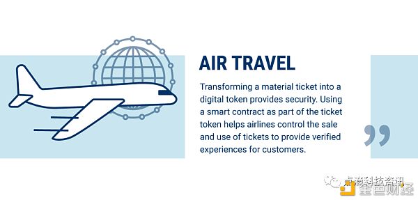 实施区块链技术以保护和协调这些数据可以带来更安全的旅程-而且对旅行者来说更方便。将纸质材料和票证转换为数字代币可提供新的安全层。使用智能合约作为票证代币的一部分可以帮助航空公司控制票证的销售和使用,以便为客户提供经过验证的体验。它还可用于创建更准确的飞机维护日志,防止超量预订等。