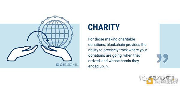 区块链的应用可以帮助简化公共援助系统,而这通常被官僚机构所束之高阁。例如,联合国世界粮食计划署(WFP)一直在利用区块链作为一种以安全,私密的方式向难民分发人道主义援助的方式。由于难民通常无法开立银行帐户,因此世界粮食计划署能够通过使用区块链和生物识别技术进行交易验证和注册来直接发送援助。