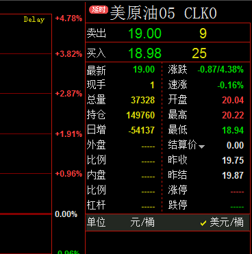 4月17日,WTI原油5月合约跌破19美元关口,续刷2002年以来新低。