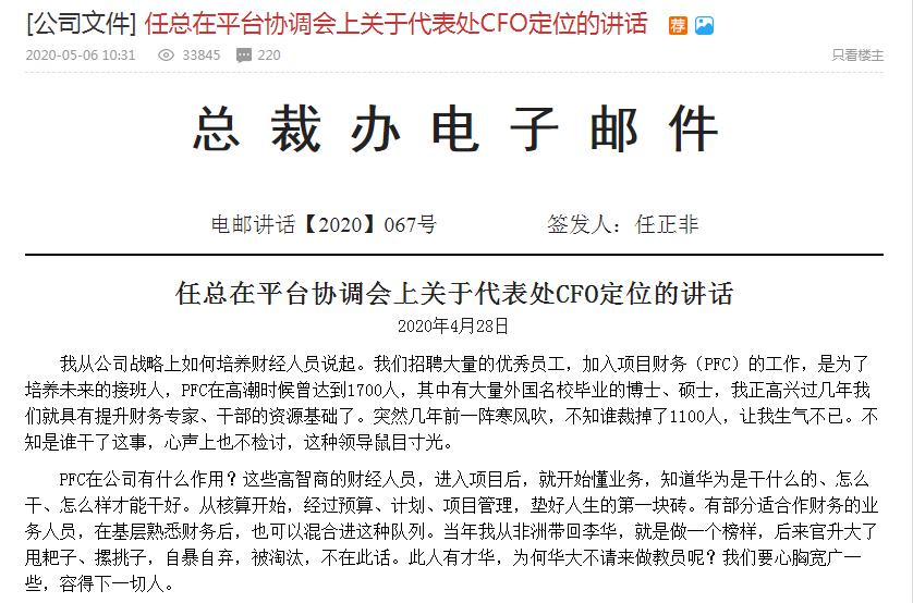疫情之下,世界各地裁员声四起。任正非却在这一当口,借炮轰裁员,重提CFO定位。