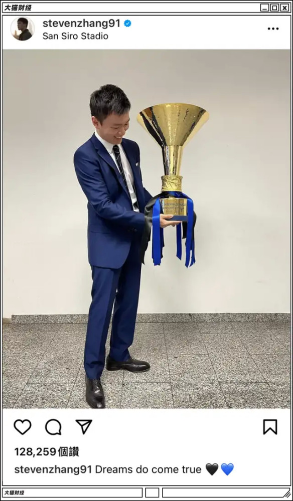 又过了三个月,意大利那边的国米也夺冠了,张近东的公子张康阳时隔11年,重新为国米带来了冠军奖杯。