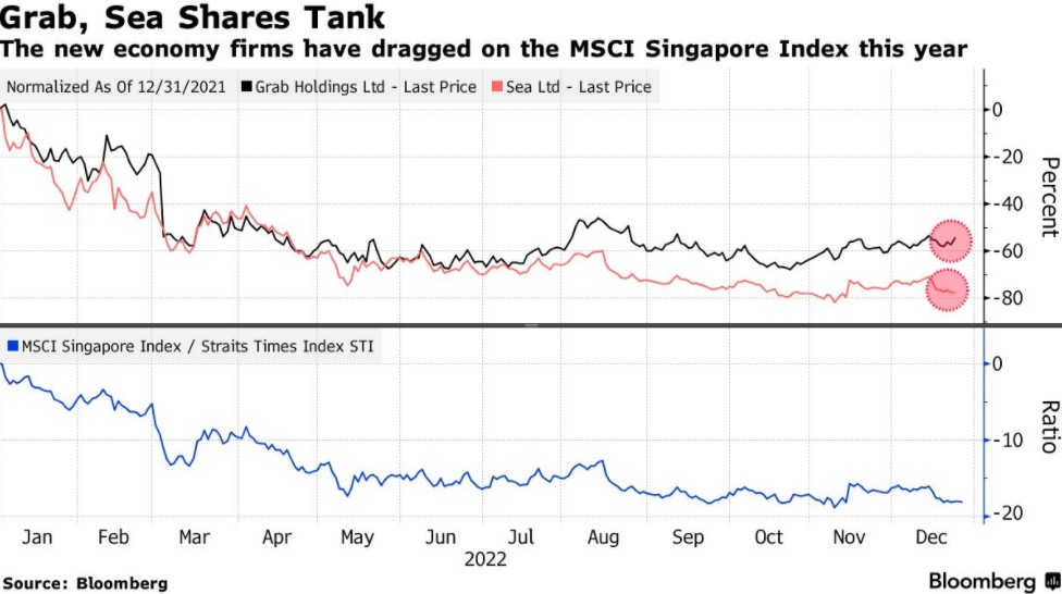 过去两年,在投资者仍青睐科技股的时候,这两只股获纳入MSCI新加坡指数。但在利率上升和经济放缓的宏观环境下,Sea和Grab可能仍将迎来充满挑战的一年,因为投资者质疑它们扭亏为盈的能力。