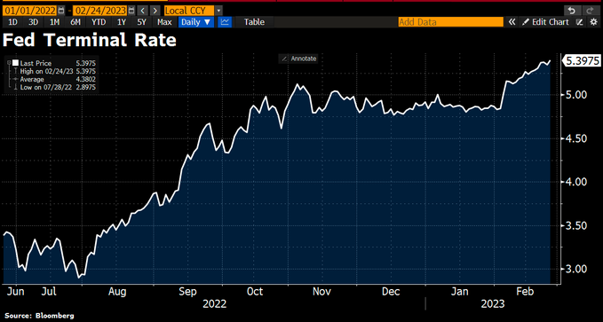 (市场对美联储终端利率的预期持续上移)