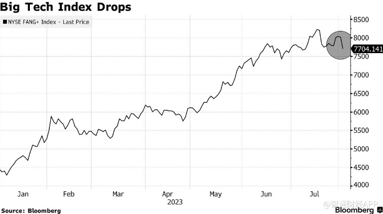 包括苹果、微软(327.5,-8.84,-2.63%)(MSFT.US)和Alphabet(GOOGL.US)等科技巨头在内的NYSE FANG+指数跌幅高达4.3%,为7月20日以来最大跌幅。