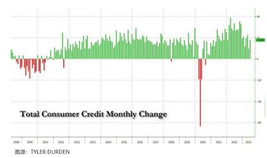 “随着非循环信贷的萎缩,最后的压力将来自(创纪录的)信用卡债务的逆转。由于信用卡利率也创下了22.16%的纪录,等待的时间不会太长。”