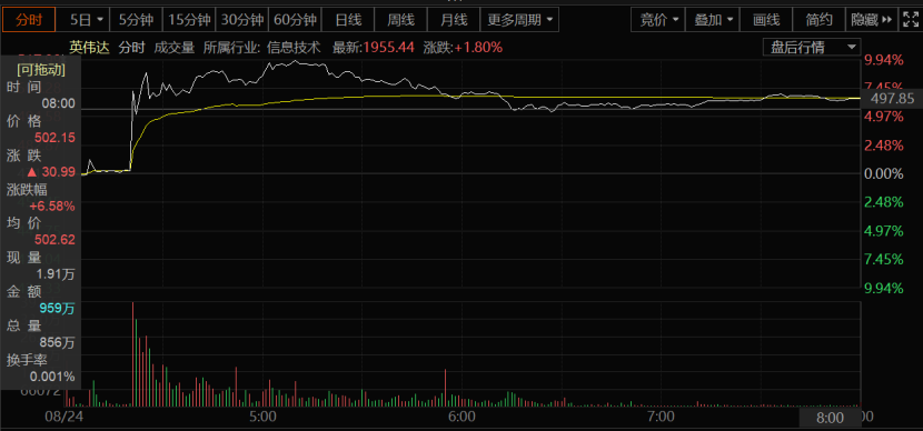 而当地时间周三,英伟达公布第二财季财报后,其美股盘后股价一度涨超10%,最终收涨6.58%。