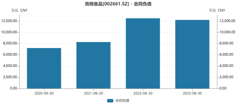 今年上半年,克明食品合同负债1.22亿元,同比下滑2.34%,而在2022年同期,该数据同比增长51.16%。