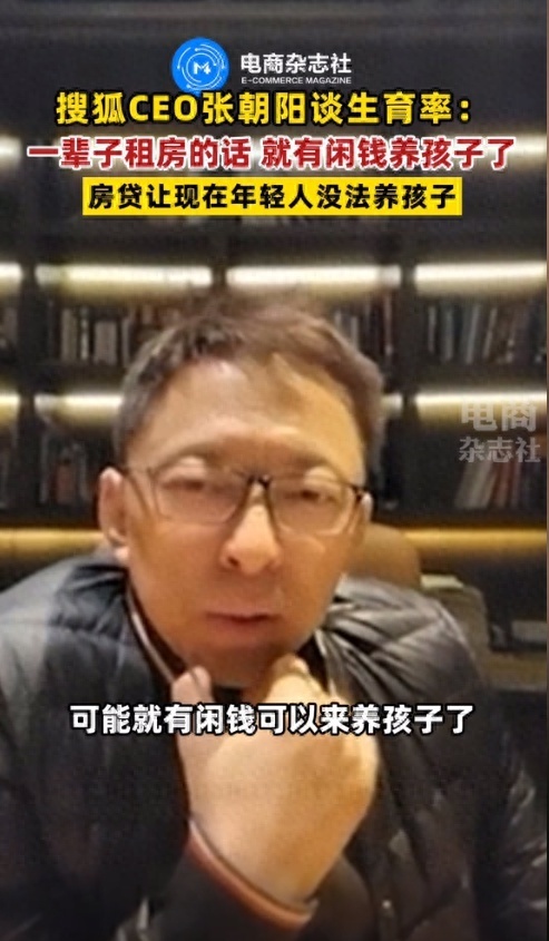 张朝阳表示,全世界好多国家的人,一辈子都是租房住的,不用买房子。如果大家都租房的话,可能就有闲钱可以来养孩子了。