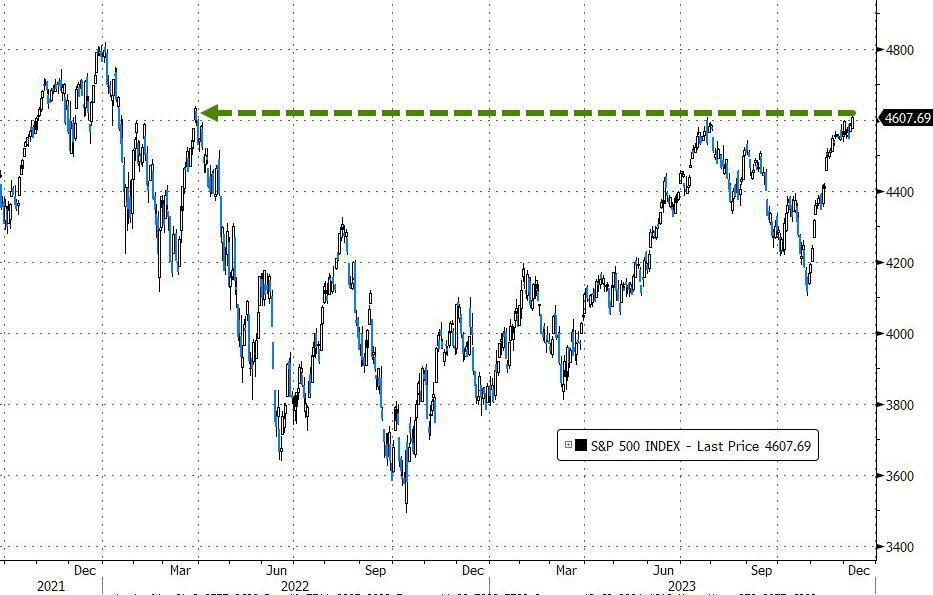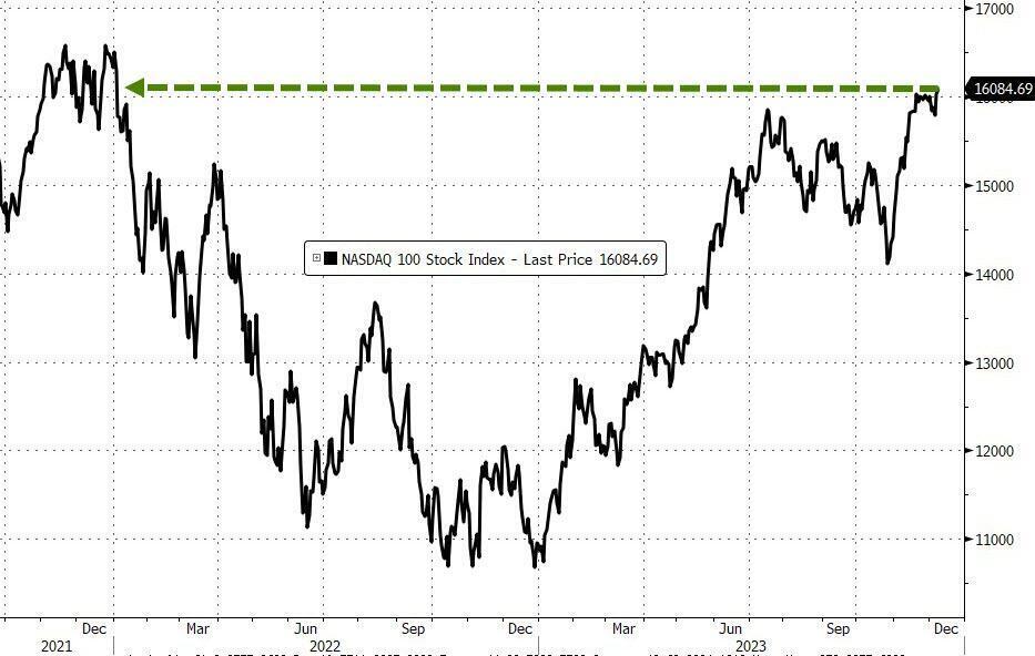 根据道琼斯市场数据,截至周五,道琼斯工业平均指数仅比大约两年前的最高收盘价低1.5%。同时,标准普尔500指数达到了自2022年3月以来的最高收盘价。纳指,创去年4月4日以来收盘新高。与此同时,10年期国债收益率从16年来的高点5%大幅下降,债券价格上涨。