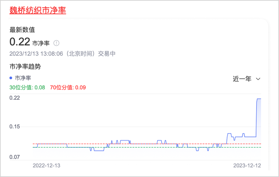 在私有化公告发布前,魏桥纺织市净率被打到了可怜的0.11,公告发布后,公司股价暴涨近一倍后,市净率也只有0.22,这是一个令人咋舌的极低的估值。