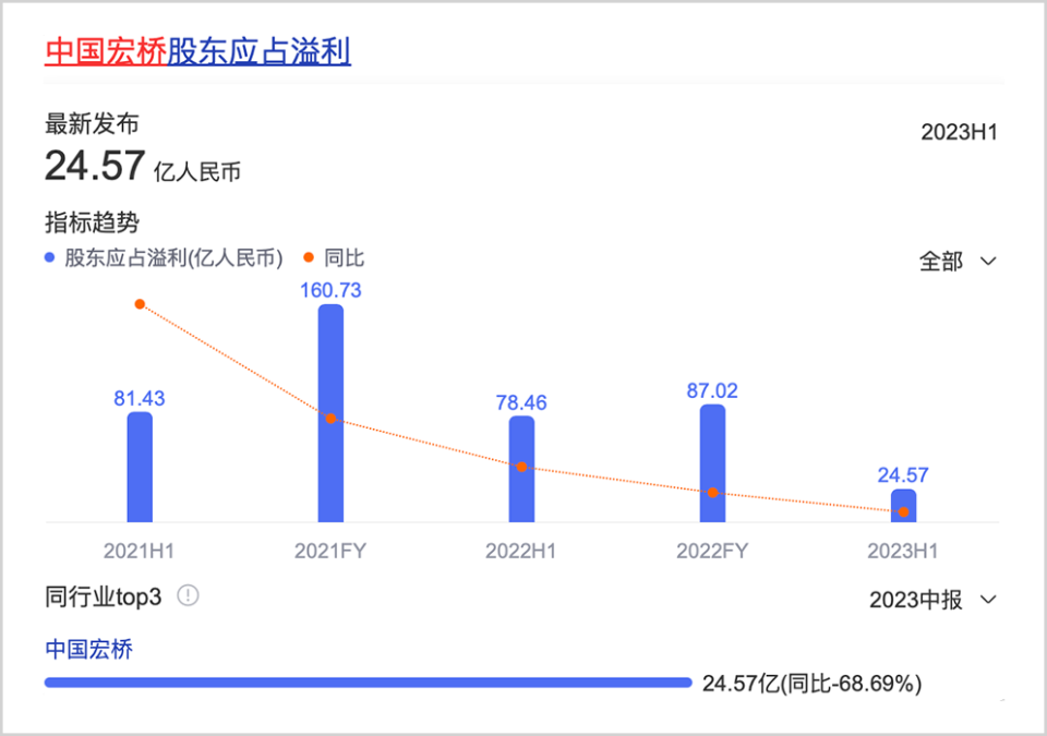 ▲中国宏桥归母净利润,来源:百度股市通