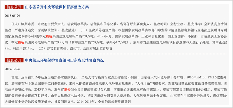 与此同时,伴随着魏桥的崛起,环保问题一直是萦绕在其头顶的“原罪”,身处重化工行业,魏桥在当地造成不小的环境污染,甚至被环保部官网点名批评。