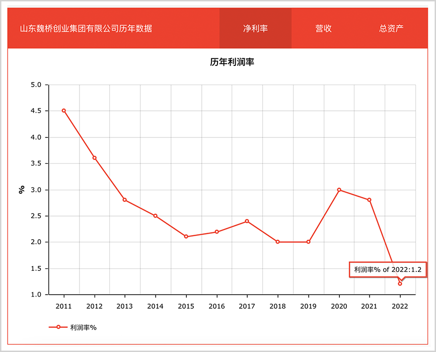 但在新时代,这两大主业很难帮助魏桥赢得未来。表面看,2023年,魏桥跻身世界500强第172名,排名上升27位,但实质上,集团净利润大幅缩水47%,利润甚至逊色于十年前,净利率仅1.2%,创十年最低水平。
