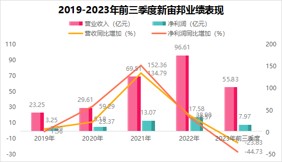 但到了2023年,公司业绩出现大变脸。前三季度实现营收121.2亿元,同比减少26.2%;实现净利润17.5亿元,同比减少59.8%,净利润降幅远大于营收降幅。