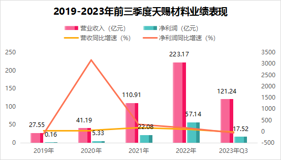 业绩方面,2022年天赐材料的业绩表现非常好。实现营收223.2亿元,同比大增101%,实现净利润57.1亿元,同比大增155%。