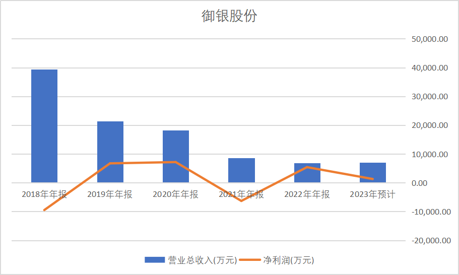 1月12日,御银股份发布了2023年业绩预报,预计全年净利润1000-1500万,比上年同期下滑了72.31% –81.54%。