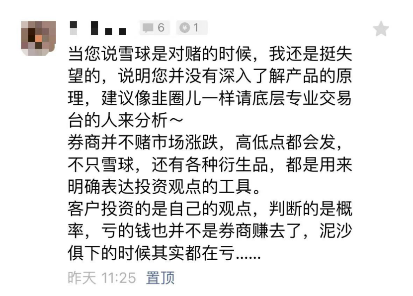 其中有位从业读者小姐姐对我们定性雪球为“对赌”产品表示“失望”。