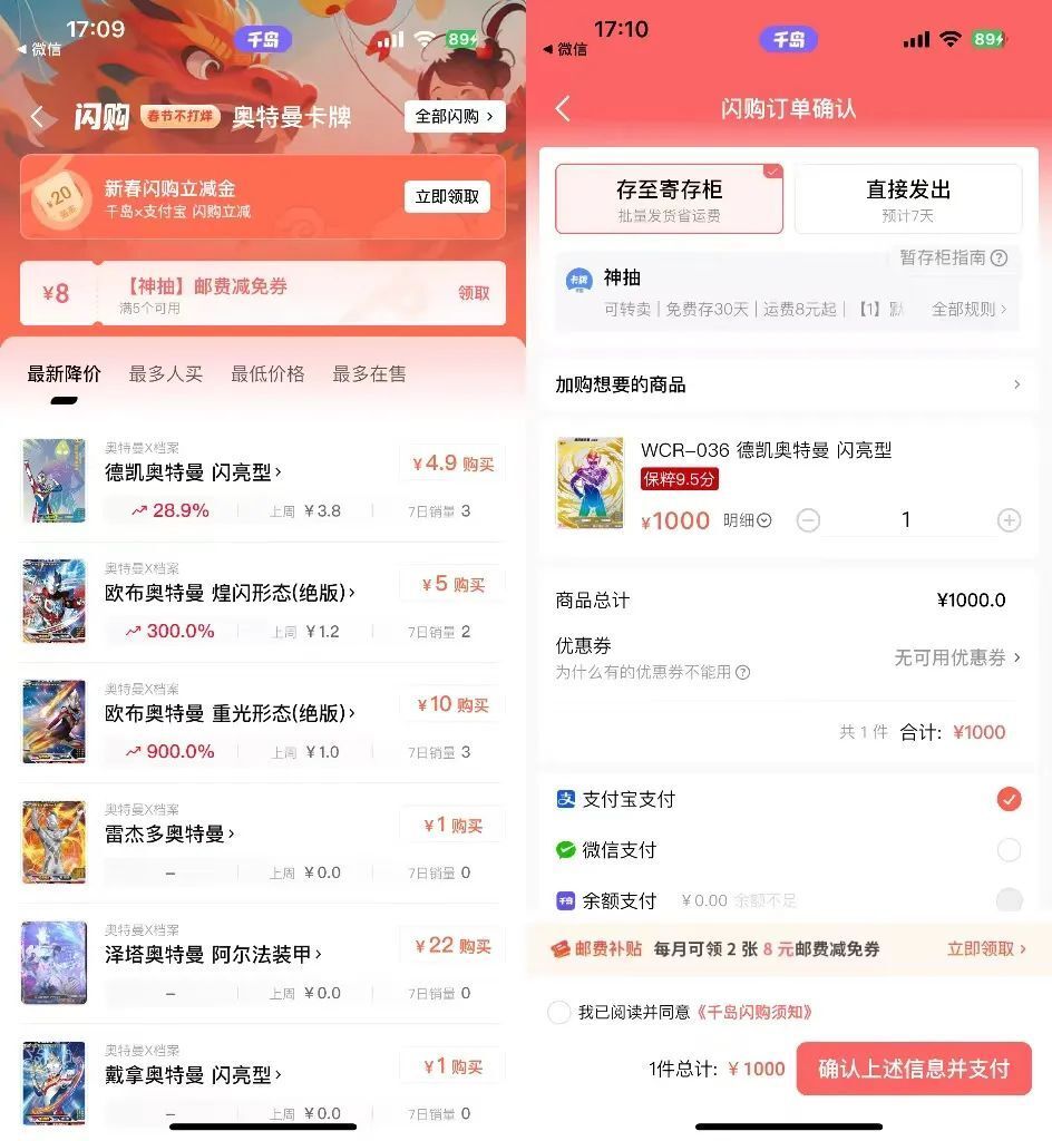 除了微拍堂之外,一款名为“千岛”的App也上线了奥特曼卡牌的在线交易。