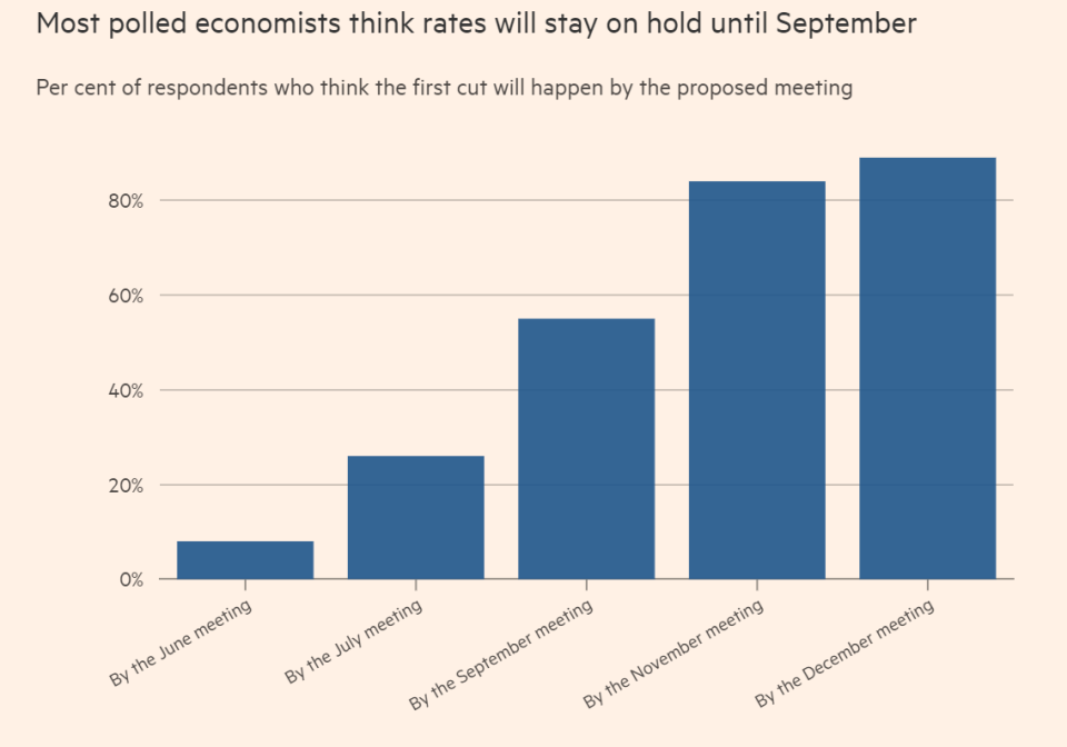 尽管美联储观察工具显示,市场目前仍然预计美联储最可能在6月进行首次降息,但经济学家们却没那么乐观。