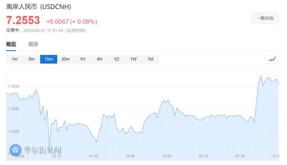 美元强势下,亚洲货币普跌。离岸人民币兑美元小幅走低,目前报7.2553。