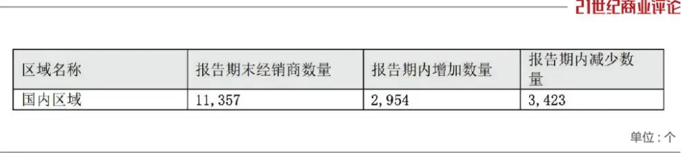 经销商方面,截至2023年底,国内区域经销商数量为11357。