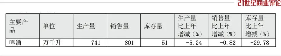 2023年,青啤销量为800.7万千升,微降0.82%,生产量则削减5.24%,库存大幅减少近3成。