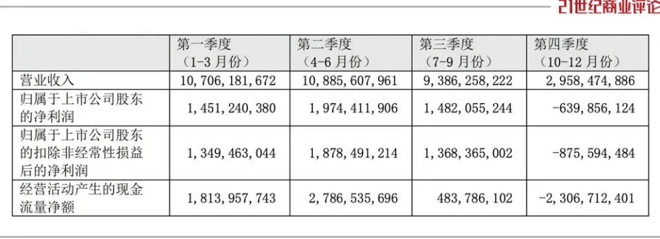去年四季度单季营收约30亿元,同比下降3.37%;净利润-6.4亿元,同比下降超15%。
