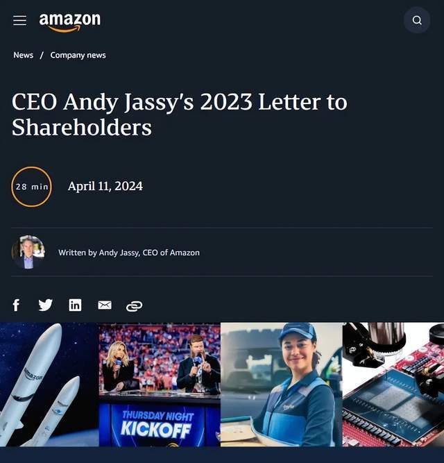 日前,亚马逊CEO安迪·贾西(Andy Jassy)发布2023年度股东信。