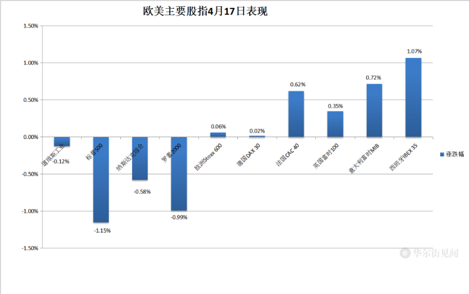 欧股方面,周二创九个月最大跌幅的泛欧股指小幅反弹。周二收跌逾1.5%的欧洲斯托克600指数收涨不足0.1%,暂别周二刷新的3月6日以来收盘低位。主要欧洲国家股指基本收涨,两连跌的英股和周二回落的德法意西股均反弹,而阿斯麦所在的荷兰国内股指收跌近1.1%。