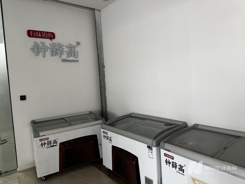 随后,记者注意到,下午三点左右,研发区域空无一人,室内陈设的四个冰柜中,有三个已被空置并停止运行,剩余一个冰柜内则零散摆放着钟薛高旗下各品牌的产品。