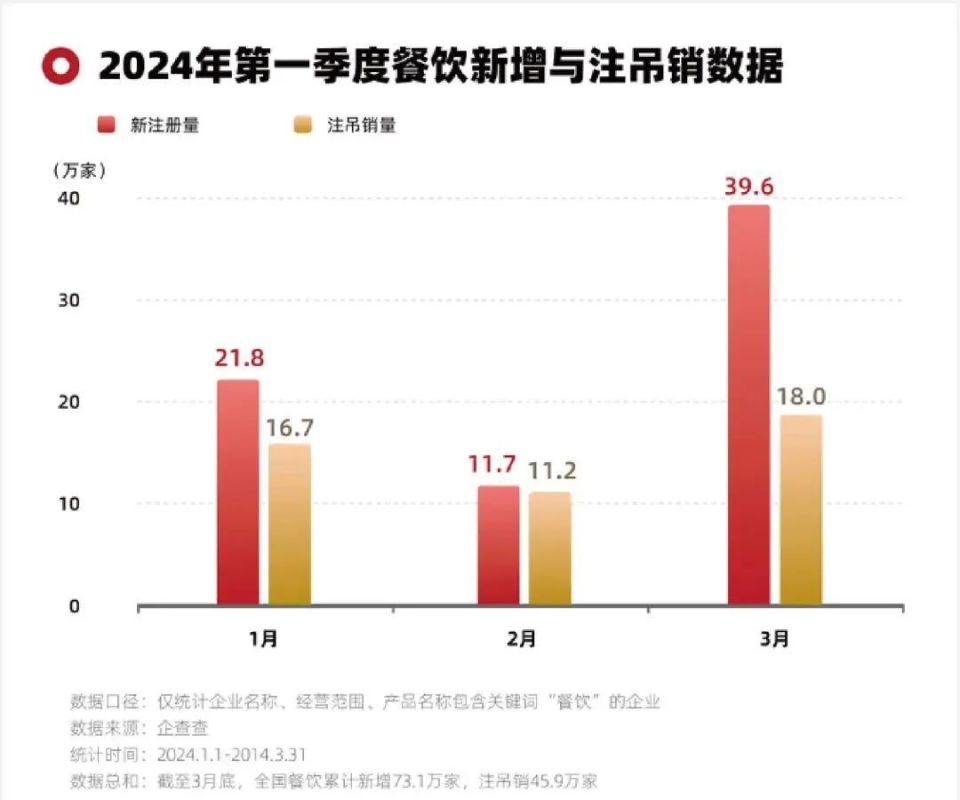 企查查数据显示,今年一季度,注销和吊销的餐饮企业达到45.9万家。