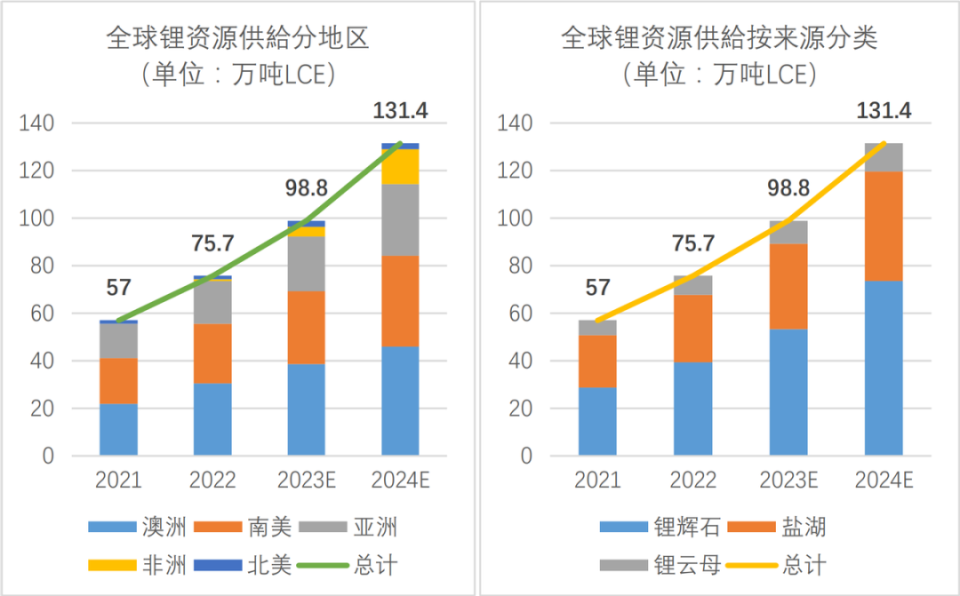 比如今年锂资源的需求大概是122万吨LCE,但是供应量都超过130万吨。