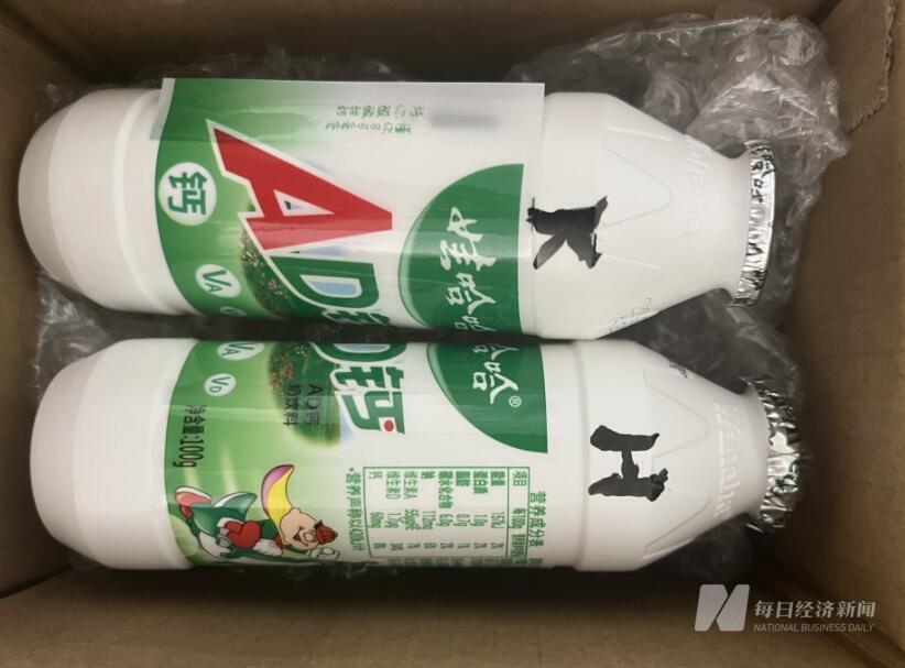 记者向娃哈哈寄送由昆明娃哈哈工厂、杭州下沙娃哈哈工厂生产的AD钙奶 图片来源:每经记者 叶晓丹 摄