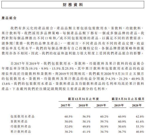 包装饮用水的高毛利率在2020年的农夫山泉IPO资料中也有披露:2019年,公司包装饮用水产品毛利率为60.2%。