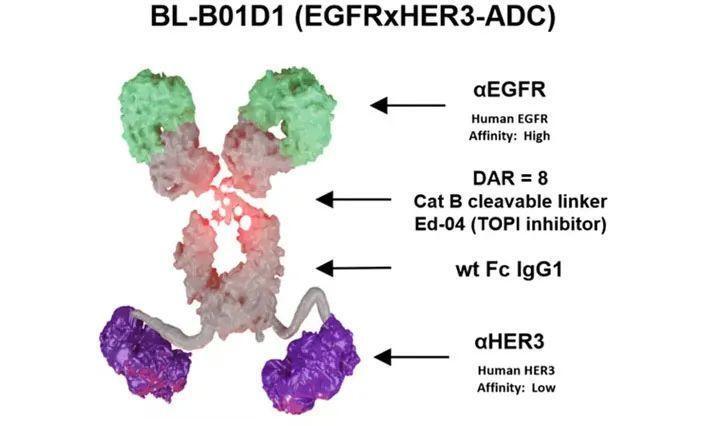 BL-B01D1是一款可同时靶向EGFR和HER3的双抗ADC药物,在经标准治疗后疾病进展的非小细胞肺癌、乳腺癌患者中,表现出具有开发前景的抗肿瘤活性。
